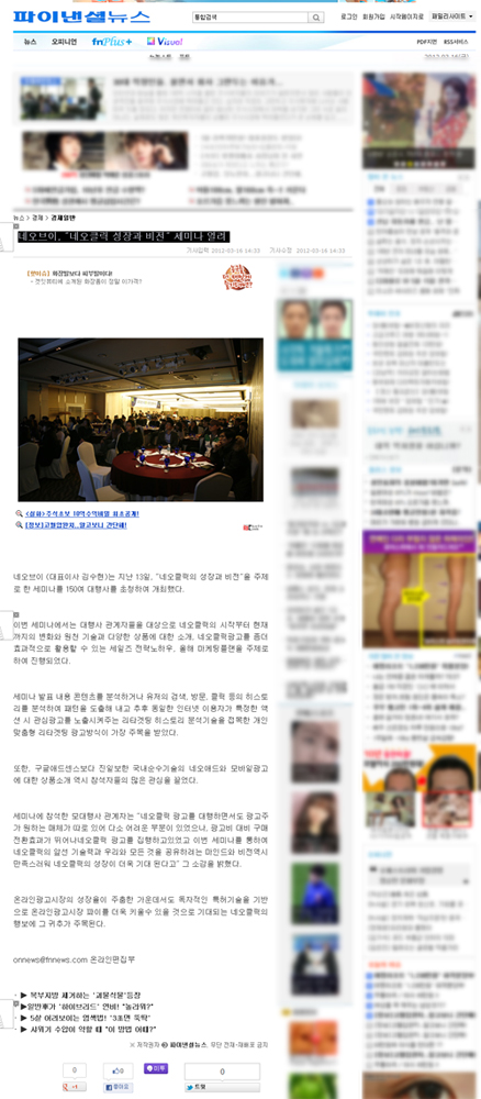 세미나에 참석한 모대행사 관계자는 “네오클릭 광고를 대행하면서도 광고주가 원하는 매체가 따로 있어 다소 어려운 부분이 있었으나, 광고비 대비 구매전환효과가 뛰어나네오클릭 광고를 집행하고있었고 이번 세미나를 통하여 네오클릭의 앞선 기술력과 우리와 모든 것을 공유하려는 마인드와 비전역시 만족스러워 네오클릭의 성장이 더욱 기대 된다고” 그 소감을 밝혔다.